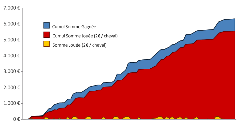 Pour votre Méthode 2, "Le Cheval qui gagne à 44%", effectivement, j'ai remarqué aussi que ce cheval sortait plusieurs fois placé. Pour ma part je joue très souvent au Jeu Simple Placé et ça me réussit assez bien, je gagne moins mais plus souvent !!!